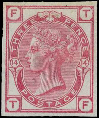 1874 3d Rose Pl.14. Very fine unused imperforate imprimatur lettered TF. Scarce one of only 22 possible examples in priv…