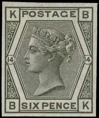 1875 6d Grey Pl.14. Very fine unused o.g. imperforate imprimatur lettered BK. Scarce one of only 25 possible examples in…