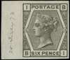 1876 6d Grey Pl.15. Very fine unused o.g. imperforate left hand marginal imprimatur lettered BI. Dated in margin ’25 Jul…