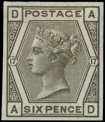 1880 6d Grey Pl.17 (Wmk. Spray). Very fine unused o.g. imperforate imprimatur lettered AD. Scarce; one of only 22 possibl…