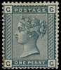 1880 1d Colour trial. Fine unused example lettered GG printed in greenish-grey on Crown watermarked paper. Couple of small tones on perfs at lower left. Scarce. SG166. Cat. £4500.