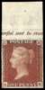 1855 1d Red brown Pl.R18 (AK). Unused top marginal imperforate imprimatur showing part sheet inscription. Very rare, one of only 21 possible example many of which are in institutional collections. SG29, Spec. C8. Cat. £1800.
