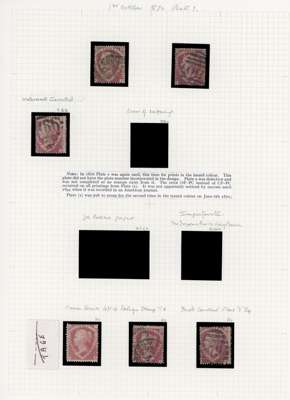 1870 1½d Rose-red Pl’s 1+3. Small selection containing an unused example from both plates, a used waterm inverted from each plate, seven used examples with minor varieties, a pair on cover to the US and an unusual proof/forgery from pl.3 lettered PI, accompanied by an article from the Philatelist 1981 regarding the item. Faults as expected but worth viewing. SG51, Spec. G6. (13).
