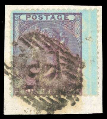 1856 6d Deep lilac (Wmk. Emblems, Azure paper). Used example tied to piece by a London City numeral. SG69a. Cat. £950.