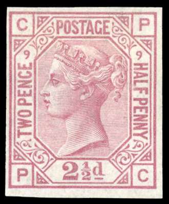 1876 2½d Rosy mauve Pl.9 (Wmk. Orb). Unused large part o.g. imperforate imprimatur lettered PC. Scarce, one of only 21 possible examples, many of which are in institutional collections. SG141, Spec. J10. Cat £2,500.