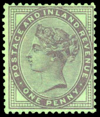 1881 1d Lilac (Die II) Colour Trial on coloured paper. Unused perforated example printed in purple on green gummed "Crown" watermarked paper. Scarce. SG172. Cat £3,000.