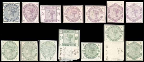1883-84 ½d-1s "Lilac and Green" unified issue. Superb unused o.g. imperforate set of fourteen imprimaturs comprising a complete set of ten imprimaturs and four additional examples of the 2½d, 3d, 4d & 9d imprimaturs. An extremely rare and difficult set to assemble. SG187/96. Cat £13,475+.