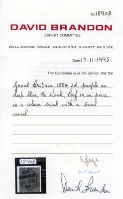 1884 1½d, 2d, 2½d & 3d Colour trials for “Coloured paper scheme”.