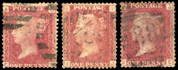 1871 Barrowman, Phillips & Co unofficial underprints. Three used examples with underprint in black 1d Rose-red Pl.152 (CA), Pl.172 (IJ) & Pl.174 (JE). Some trimmed perfs otherwise fine, scarce. Spec. PP13. Cat £1,425. (3).