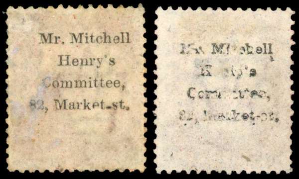 1864 Mitchell Henry's Committee, 82 Market-St unofficial underprints. Two used examples