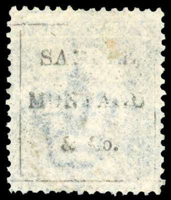 1864 Samuel, Montagu & Co unofficial underprint (Letters 2mm high). Used 2d Blue Pl.9. (LK) with underprint in black, cancelled by a faint datestamp. Spec. PP192. Cat £750.