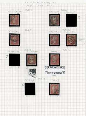 1855 1d Red-brown Pl.1-15 (SG26, Die II, Alphabet II, Wmk, Large Crown, Perf 16). An attractive used study of this difficult issue including scarce plates, re-entries, constant varieties and two watermark inverted examples (Pl.5 & Pl.8). Some minor condition faults but mainly in above average condition. SG26, Spec. C5(1)c/d/e/f/g. Cat £6,000+. (22).