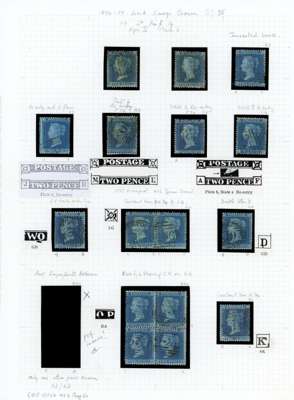 1857 2d Blue Pl.6 (SG35, Die I, Alphabet III, Wmk. Large Crown, Perf 14). A fine group of sixteen used examples (ten single examples, a horizontal pair and a block of four). Including a watermark inverted example (BC), various re-entries, double letters and constant varieties. Some faults, an Interesting group worth viewing. SG35, Spec. F7. Cat £2,650+. (12)