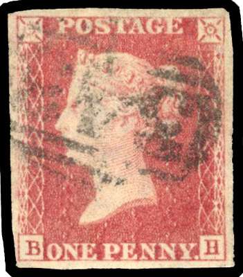 1857 1d Rose-red Pl.60. (Die II, Alphabet III, Wmk Large Crown, Perf 14). Used imperforate four margin example lettered BH, cancelled by a Hatfield ‘343’ numeral. SG40a, Spec. C10(1)k. Cat £2500. 1979 BPA Cert.