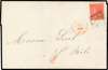 1869 4d Deep vermilion Pl.11. Very fine wrapper posted on board a channel Island steamer to St Malo, France. Prepaid at the 4d per ¼oz rate by a 4d Deep vermilion Pl.11, cancelled by St Malo '3734' gross chiffres lozenge with an 'Iles C/St Malo' cds in red at foot for SP.14.1869. Scarce and unusual. SG95, Spec. J58.