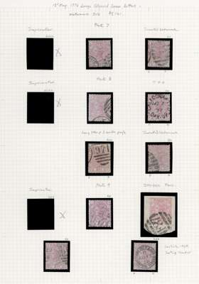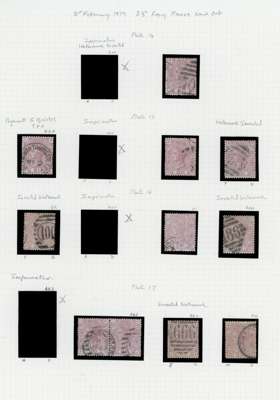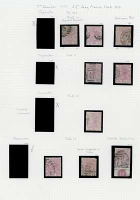 1876-1880 2½d Rosy mauve Pl.3-17 (SG141, Wmk. Orb). A fine group of forty four used examples and a brass bit of orb watermark. Including eleven watermark Inverted examples, several obscure and unusual cancellations and two plate number marginal examples. Minor faults, attractive. SG141. Spec. J4-18. Cat £5,000+ (44).