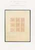 Tender Essay: 1879-80 Perkins Bacon Tender essays for ½d, 1d, 1½d & 2d values, engraved by Ridgway, including: sheet showing block of 36 of the 1d (in vertical rows of each design) and vertical strip of five at left of values to 2d in blue on gummed unwmkd paper, and block of 9 in pale brown of 1½d and 2d designs on wmkd wove paper, fine condition, scarce