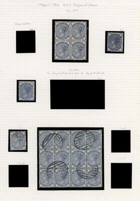1883 ½d-1s ‘Lilac and green’ unified issue (SG187-196). A fine collection of unused, used and covers most values including three unused 9d and and an unused 1s, 1½d colour trials, shade varieties, plug flaws, watermark inverted examples and a bisect 2d on piece. Interesting group. SG187-196. Spec. K17A-K26. Cat £7,500+. (51).