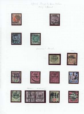 1882-1901 Queen Victoria Official Departmental Issues. Collection of used Queen Victoria departmental officials consisting of twenty seven examples including “ARMY OFFICIALS”, “GOVT. PARCELS” and “I.R. OFFICIALS” including a superb SGO7 1s Green cancelled by a blue Manchester “498” numeral. Some faults as to be expected.