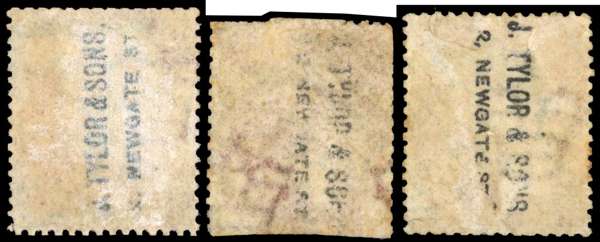 1868 J. Tylor & Sons, 2 Newgate St unofficial underprints. Three used examples
