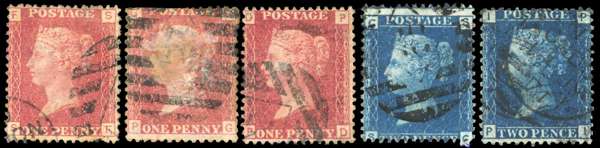 1866 G. Hitchcock Williams & Co (G. H. W. & CO. ST. PAUL's) unofficial underprints. Five used examples with underprint (Type 73) in black reading upwards. 1d Rose-red Pl.106 (SF), Pl.123 (PG), Pl.158 (PD) & two 2d Blue Pl.13 examples (SC & PI). Some minor faults as usually seen. Scarce. Spec. PP332 (x3) & PP323 (x2). Cat £2,425. (5).