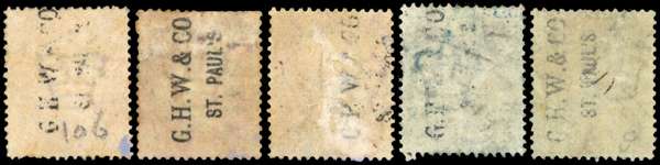 1866 G. Hitchcock Williams & Co (G. H. W. & CO. ST. PAUL's) unofficial underprints. Five used