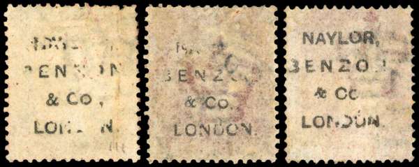 1868 Naylor, Benzon & Co., London, unofficial underprints. Three used examples