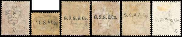1868 G.S.S. & Co. unofficial underprints. Group of six used examples