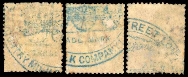 C.1876. Country Milk Company London, unofficial underprints. Three used examples