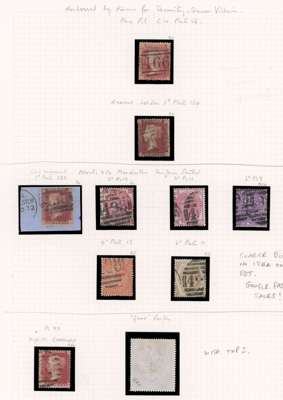 C.1870-80 Embossed Security Markings. Fine group of ten stamps each showing well struck yet partial embossed security marks for firms including Mac Pil, Renner of London and Norelli & co Manchester also offered with a 5s showing a ‘Ghost’ perfin. Scarce and unusual group, with some minor faults yet predominantly in good condition. (10).