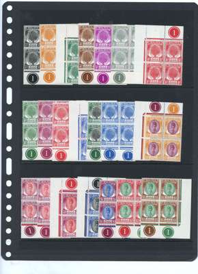 1950-5 set of twenty-one in unmounted o,g. Plate blocks of four. Very fine save one $1 with faint glue marks on face. SG 76-90, £680