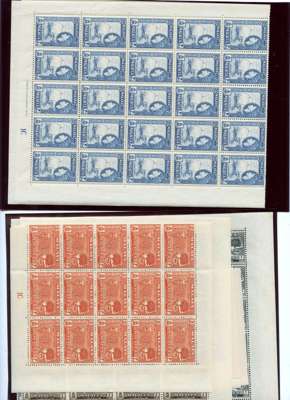 1957 set plus Plate and imprint blocks of four to $1 (4c imprint only), also 20c sheet of 50; 1960 set plus Plate and/or imprint blocks of four and six ($2 six only), the two $5 blocks in strongly contrasting shades, also some larger blocks to 20c. Overall toning but generally very good appearance. SG 39-60
