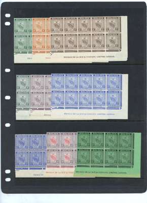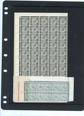 1935-41 set multiples unmounted o.g., comprising 1c sheet; 2c green, 4c, 5c, 8c-15c corner blocks of ten with imprint, 40c and 50c corner blocks of eight with imprint; 2c orange, 3c green and 6c grey corner blocks of ten. All fine and fresh, save the 6c with a couple of foxed spots. SG 21-36