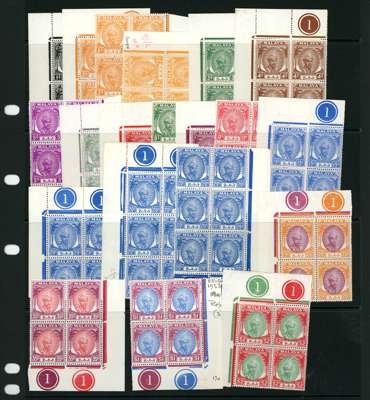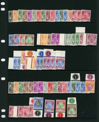 1950-6 set collection on Hagner sheet, unmounted o.g. Two complete sets of twenty-one, one with several values to 50c slightly foxed. Includes a fine group of shades with 4c chocolate (2) and 30c, and CW-listed shades including some (2c, 8c, 25c, 50c, $1) at least as good as those listed for other states. No $5 sepia frame otherwise a comprehensive group. With a group of twenty Plate blocks to $2, again with some decent shades. SG 53-73
