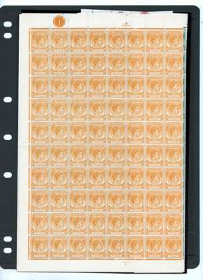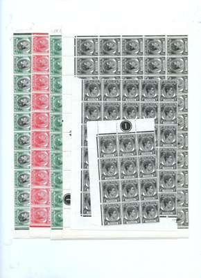1949-52 values to $1 in larger blocks, unmounted o.g. 1c x 50, 30 and 12; 2c sheet; 3c x 80, 50 and 28; 5c x 17 (irregular, adhesion on selvedge); 6c x 15; 8c scarlet x 30; 8c green x 50; 12c x 50; 15c x 50 and 16; 20c black and green x 60 and 12; 40c x 50; $1 x 25. Almost all with Plate numbers. Some folds and splitting but generally fine. SG 3/20, £3077