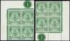 1951 3c yellowish green. Unmounted o.g. top left and lower right Plate blocks of four. SG 130a, £208