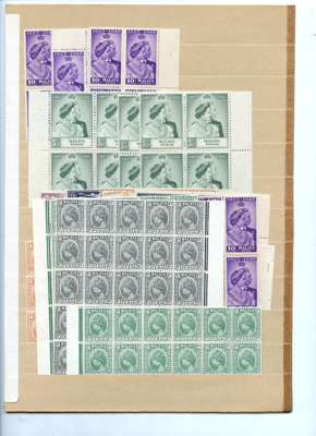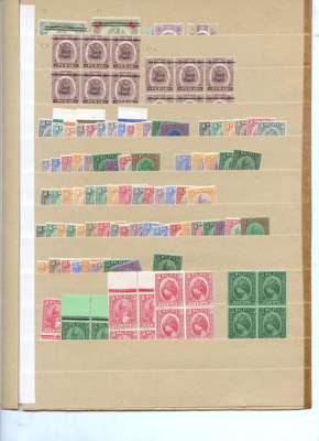 1900-53 range on manila stocksheets, some oddments but with a 1936 set mint, the $5 fine; 1938-41 set mint with shiny hinge residue; also unmounted blocks with 1937 and 1939 6c and Silver Wedding imprint block of eight and two Plate blocks of four, good gum, useful group