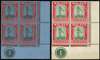 1941 $1 and $2 Plate blocks of four, unmounted o.g., the gum naturally streaky on both, puddled on the $2. Fine appearance, good for these. SG 86-7, £316