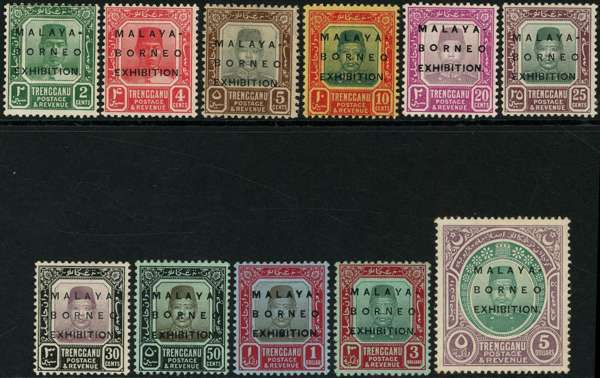 1922 Malaya-Borneo Exhibition set of eleven, o.g., some pink adhesions on reverse as usual, fine. SG 48-58, £600