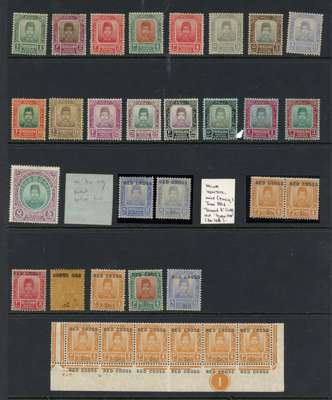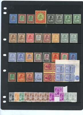 1910-55 mint range (141) on three Hagner sheets. 1910 set to $5 less 4c orange, toned o.g., some hinge remainders; Red Cross including 4c + 2c CSOSS on selvedge; 1921 MCA trio fine o.g. with extra $5, Script to $3 with extra 3c brown and 8c grey; 1941 surcharge pair blocks; 1949-55 set a fine unmounted range of the shades per CW catalogue (some are very good despite not being listed in Part 1) including 8c deep green x 2, the $5 with a tiny foxed spot; also 3c, 30c and $1 blocks of four and 20c black and green block of twelve
