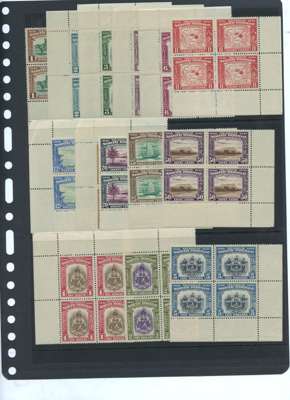 1939 set of fifteen in unmounted o.g. blocks of four, all corner blocks, some gum toning otherwise fine, a very difficult set in multiples. SG 303-317, £5600
