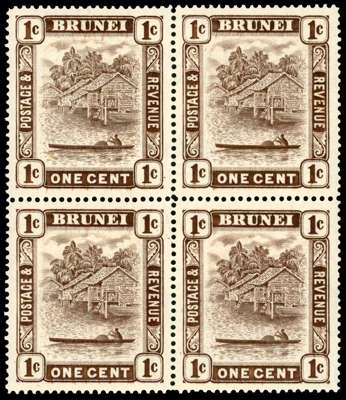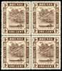 1947-51 1c chocolate block of four unmounted o.g., lower right stamp with 'A' of CA in watermark omitted. Fine. SG 79a, £1200
