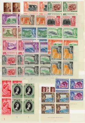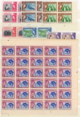 1947 3½d and 7d sheets, cream gum; 1951 set in unmounted o.g. Plate blocks of four, light cream gum; 1957 3c, 5c and 10c unmounted Plate blocks