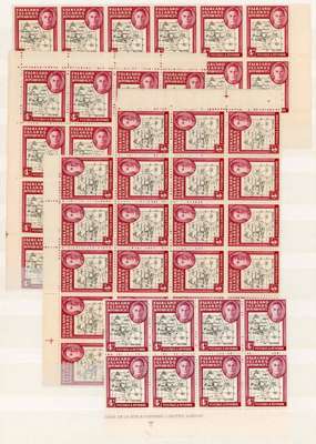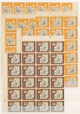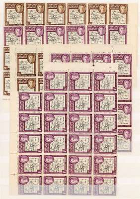 1946 Thick Map o.g. multiples, unmounted, mainly with evenly toned gum. 2d including severed Plate 3 sheet, some oxidisation; 4d including SOUTH POKE, relatively fresh; 6d, 9d and 1/- each including SOUTH POKE, 9d x 2. SG G3/8