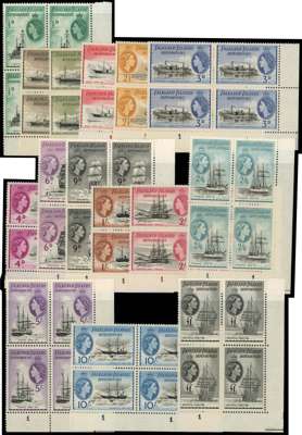 1954-62 set of fifteen in unmounted o.g. Plate blocks of four. A handsome set, with the gum just a little off-white on a few values. SG G26-40, £900