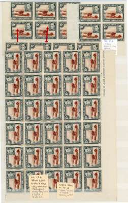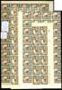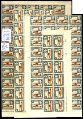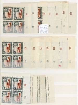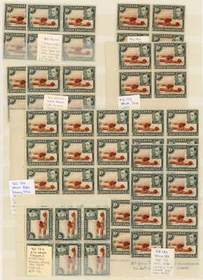 1952 10c brown and grey multiples, o.g., mostly unmounted. 15 Plate blocks, plus imprint blocks and numerous blocks of up to 99 with Berrington-listed varieties including R7/5 no dot in scroll (2, each with a slightly short perf), gum toning but a good study group. SG 136