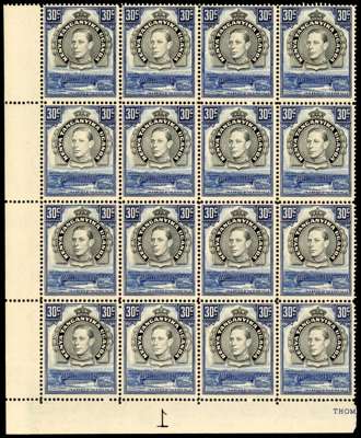 1941 30c perf 14 corner block of sixteen with (reversed) CP1 under R10/2, unmounted o.g. A rare multiple but with toned gum and R9/1 with a small foxed area on the reverse. SG 141a, £2560