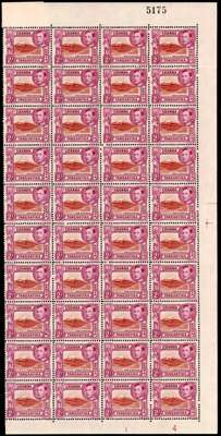 1944-54 2/- lake-brown and brown-purple right four columns of sheet with sheet number and Plate 1-4, some minor selvedge wrinkling otherwise fine. A fine multiple. SG 146b, £2000