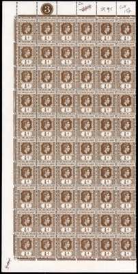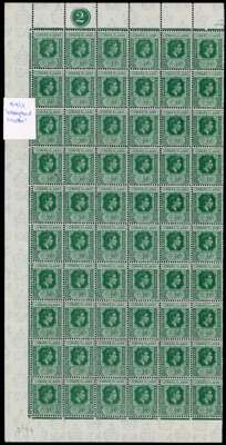 1938-51 ¼d to 3d large multiples, mostly panes and sheets. Includes ¼d RP and ½d sheet with R10/5 ‘serrated edge’, ½d LP with R9/3 strengthened rosette; 1d green blocks with R7/3 LP ‘DI’ flaw and both corrected states; 1½d Plate 1 LP and RP and Plate 2 sheet with R9/3 LP; 2d block and 2½d LP each with R9/3 LP; 3d RP and two blocks of 40. Mainly fine unmounted o.g. SG 95/107a