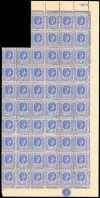 1938 2½d bright blue right pane less the top left corner block, somewhat toned o.g., typical of the printing. Keyplate flaws include R7/5-6 damaged top frames; also R9/4 sloping ‘L’. SG 105, £1680